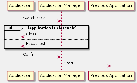 The Application Manager service is responsible for application lifecycle and switching between applications and views. This includes: